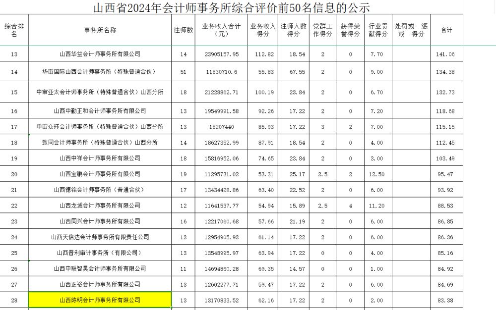 祝賀山西陳明會計(jì)師事務(wù)所有限公司獲山西省事務(wù)所綜合排名28名